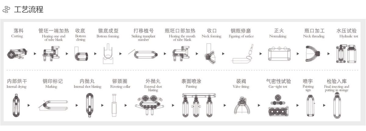鋼質(zhì)無縫氣瓶利用國際加工設(shè)備、先進的工藝流程制造而成,公司采用鋼管旋壓式加工方式,既保證了氣瓶壁厚,又讓氣瓶美觀雅致。