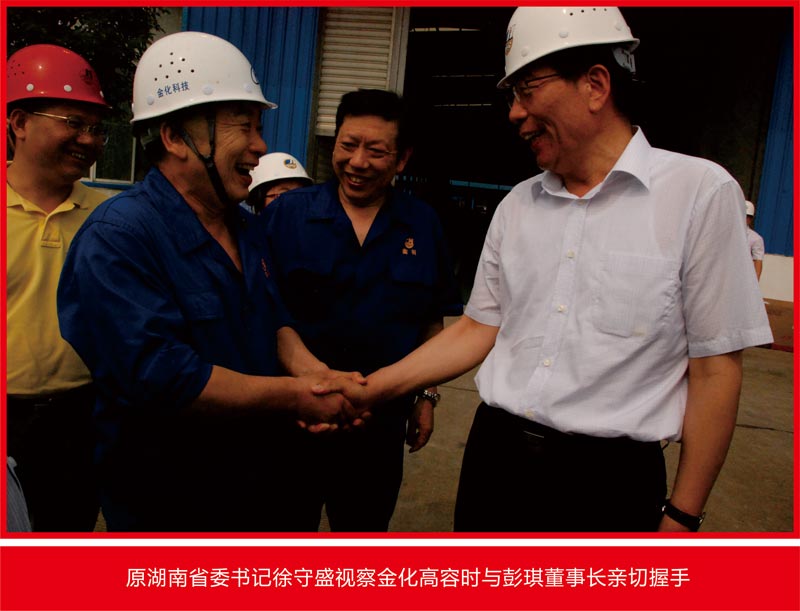 原湖南省委書記徐守盛視察金化高容時(shí)與彭琪董事長(zhǎng)親切握手