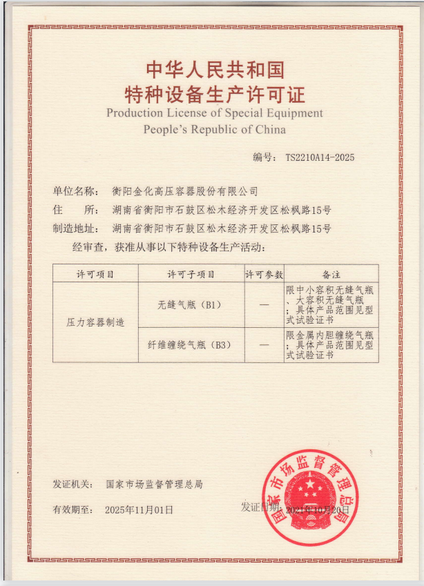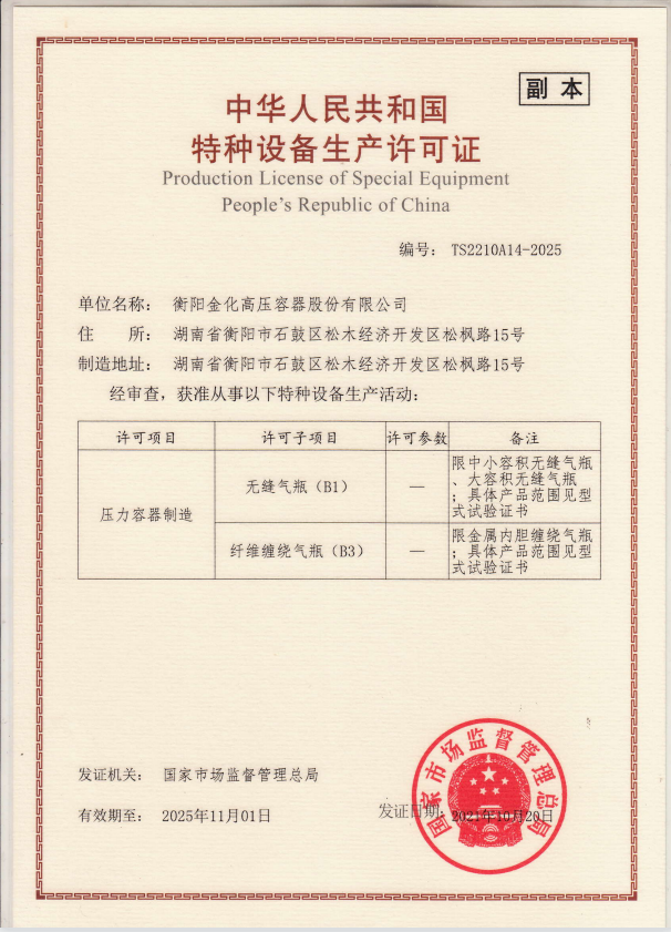 特種設(shè)備制造許可證 (有效日期:2021.11.1-2025.11.1)